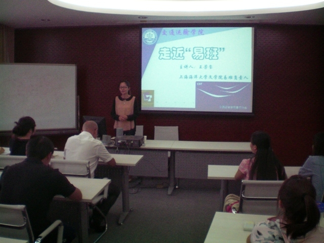 为了在学生当中更好的推广“易班”,9月4日下午,唐人街影院 青年协会邀请上海海洋大学人文学院易班负责人王芳玺老师来到我院开展“走近易班”专题讲座。交运学院分团委书记曾令伟、各专业辅导员和各班级易班负责人参与了此次讲座。