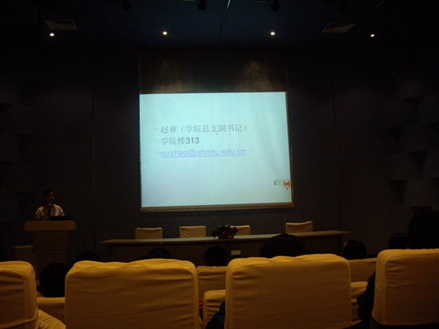 首场讲座由学院党总支副书记赵睿老师主讲,题目是《大学与人文》,赵老师用“何为大学?大学何为?今天我们为什么要读大学?如何规划好四年的大学生涯?”这四个问题来开场,引发同学们的思考,并多角度、多层次的对大家阐述了她自己对大学的理解,对大学生活的理解,对大学应该做些什么的理解,让与会的同学意识到:大学不仅仅是学习养家糊口的本领的地方,大学之所以为大学,是因为大学有一种有别于企业、军队等的“内在精神”,大学有一种独特的人文气息在支撑着。第二场讲座是陈佳儿老师主讲,讲座的内容是大学生活规划与管理,陈老师通过数据和图表融合的方式,结合丰富多彩的案例,引发了新生的思考与共鸣,让新生对今后四年的大学生活规划与管理有了一个大概的目标,为以后的学习和大学经历提供了努力的方向。第三场讲座由陈莉老师开展,内容主要是校史和院史介绍,陈老师是我校03级航运管理专业学生,至今在校的时间算上学习和工作已接近十年,对于学校和学院的各项情况均比较了解,讲座中以自己的切身体会,深入浅出的将一些学校和学院的历史以及在海大的生活经验介绍给在座的同学们,过程中不仅有严谨的专业心理知识也不缺诙谐幽默的语言,引的全场笑声连连,掌声不断。
