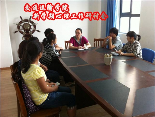 2012年9月19日下午,唐人街影院 新学期心理工作研讨会在交运205召开。唐人街影院 心理辅导员陈佳儿老师、学院心理社团抒心坊会长施申捷同学以及各年级心理委员代表参加了会议。