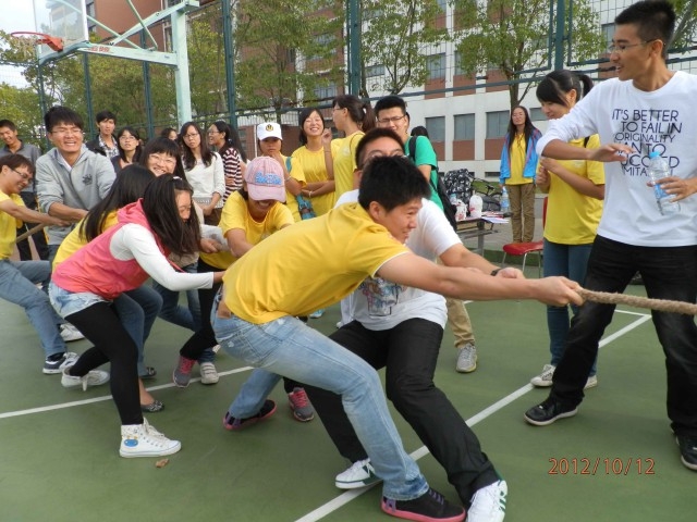 活动开始,别具匠心的“破冰游戏”使得活动现场的气氛被调动起来,同学们很快就进入了状态,打破彼此间的生疏。之后,六个大组都成功的完成了“火车接龙”这个环节。随着“五项全能”活动进行,每个组在组长的领导下,发挥了其中各个组员的特色和长处。紧接着,本次活动进入了“八人九足”的游戏环节,整齐的脚步声,清脆的口号声,响亮的加油呐喊声,一度把整场活动推向高潮。在之后的中场休息时,English Talking社还组织了“Fruit,Animal or Vegetable”的娱乐小游戏,不仅让大家在紧张的游戏环节中得以调整,还丰富了同学的英语知识,取得了很好的效果。最后,团校素拓活动在扣人心悬的“团队拔河”中圆满的落下了帷幕。
