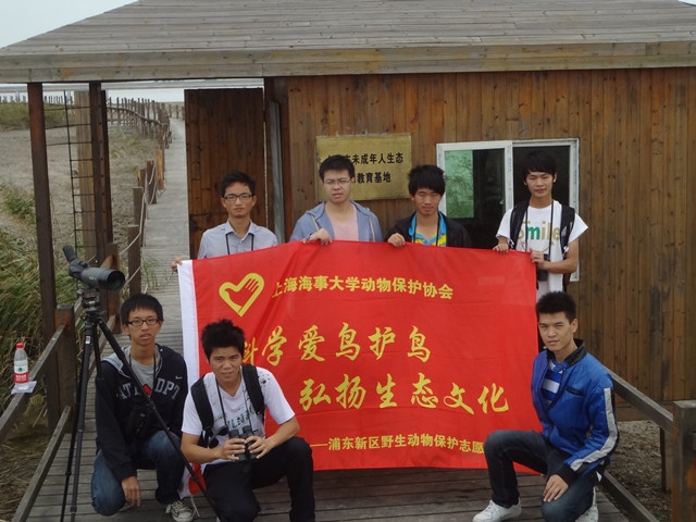 ur2young 在 周三, 11/28/2012 - 11:54 提交2012年10月13日上午,由唐人街影院 动物保护协会主办的“生态之旅·观鸟培训”活动,先后于东海南汇嘴和南汇湿地保护站附近进行,活动邀请了动物保护协会大一新生成员参与,进行生态体验。活动期间,由动协前任社长蔡文超与此次活动负责人程海涛一起作为鸟导,教会参与者使用单筒望远镜,并细致讲解了鸟类的名字、特征与习性,让学生对鸟类有了更多的了解。通过本次活动,大家不仅充分享受了快乐,增进了团员之间的友谊,同时也为保护生态环境做出了自己的一份贡献。参与者合照院)在南汇东滩禁猎区栈道观鸟