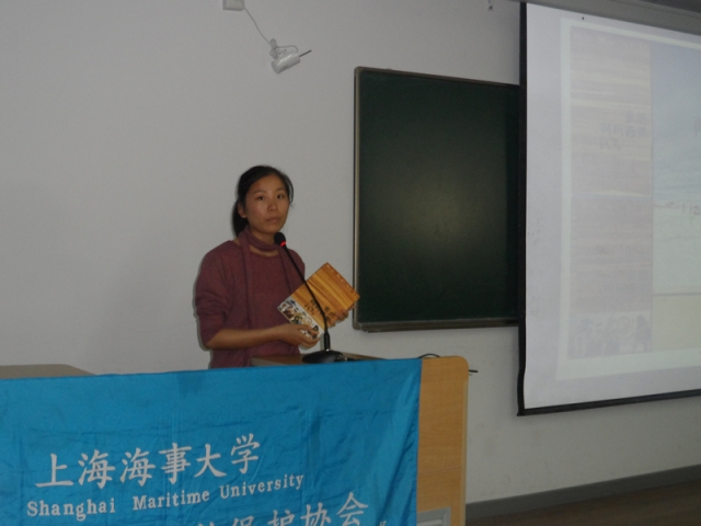 本次宣讲会请来绿色江河上海活动的负责人周春老师,为大家介绍绿色江河自建立以来的公益之路,以及《亲历可可西里十年》这本书,在场同学都被周春老师这颗公益之心所打动。并且,本次宣讲会还请来动物保护协会中参加暑期社会实践小队的成员,向大家介绍他们建立保护站的亲身经历,分享他们做公益的心得体会。