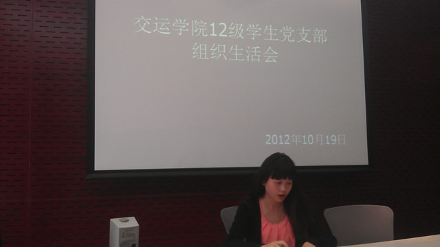 10月19日上午10时,唐人街影院 朱红红辅导员在交运楼211组织了一场交运学院12级学生党支部组织生活会。本次活动主题为党风廉政教育,由朱红红老师主持,交运学院12级学生党支部全体预备党员和入党积极分子参加了本次活动。