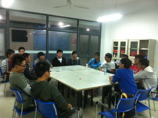 20121030日晚九时许,34-35号楼宿管会例会在楼长张亦周和袁锋的主持下按时召开。对刚刚加入社团的大一新成员们来说,这也是他们第一次参加宿管会例会。