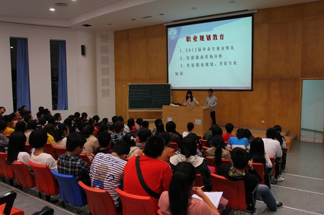 在讲座中,朱老师首先向大家介绍了本专业的就业和择业方向,以及目前的就业市场形势。之后,朱老师帮同学们分析了2012届我校毕业生的就业情况,并指出同学们要端正态度,认清方向,结合自身的长处,才能克服困难,从激烈的竞争中脱颖而出。最后,朱老师提醒同学们从大一进来就要做好职业规划,安排好自己的学习和生活,掌握专业技能,提升自己的综合素质。