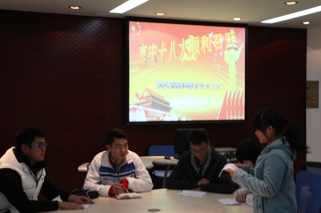2012年11月19日中午,唐人街影院 2012级学生党支部在交运楼215组织召开以“喜庆党的十八大顺利召开”为主题的党支部生活会。会议由党支部宣传委员李继泽主持,唐人街影院 2012级全体新生党员,入党积极分子参加了这次会议。