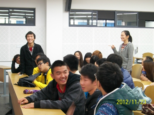 2012年11月23日,唐人街影院 国航122全体同学在教学楼2B103开展了以“凝聚班心,共享青春”为主题,以“增强班级凝聚力”为宗旨的班会活动。在加强同学间的熟悉度,增加班委和同学们的交流及相互间的磨合的同时,提高同学们的集体荣誉感,促使班集体特色的建立。本次班会由国航122班班长李辰曲主持,国航12级辅导员朱红红、辅导员万京老师出席了此次班会。