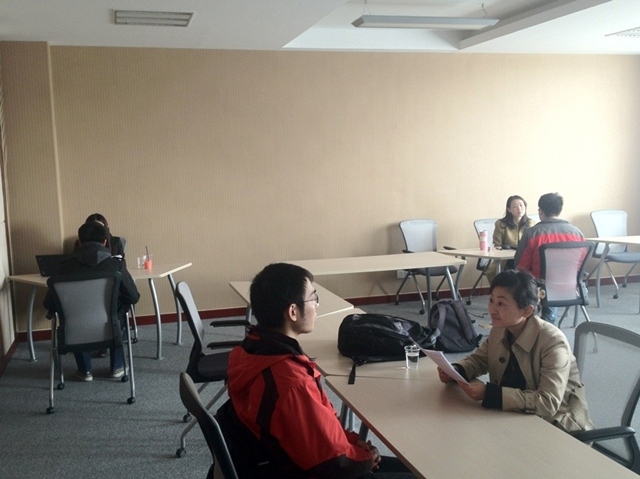 招聘共分两个环节。上午,公司在唐人街影院 报告厅举行宣讲会,Micky详细介绍了公司经营的各项业务、各个部门以及招聘和录用人才培养计划,并由Vicky等校友作经验介绍,让在座的同学对UPS有一个更为全面直接的了解,也对岗位的发展和培养有了大致的认识。下午,公司在交运楼207、209、211进行笔试和面试。首先,同学们填写应聘申请表并分批进行笔试,然后,面试官与同学们进行一对一面试,面试全程采用英语问答。面试结束后,Micky公布了面试结果宣布的时间。