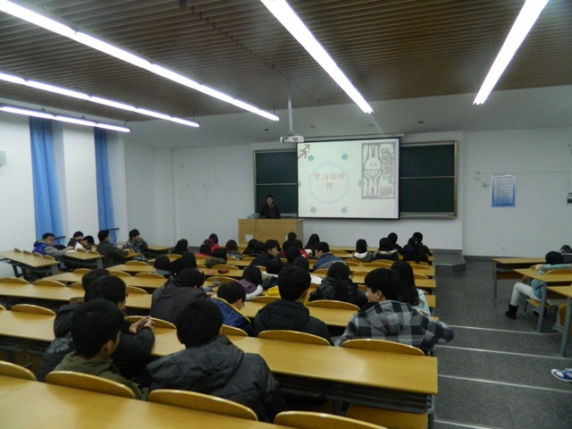 倡导活动中,首先辅导员介绍了该活动的开展,并提倡实行。然后,班级里学习优秀的同学就主要课程的学习方法、注意要点以及学习的误区谈了一下自己的看法。最后,同学们通过协商,形成了“一帮一”结对模式的学习小组。