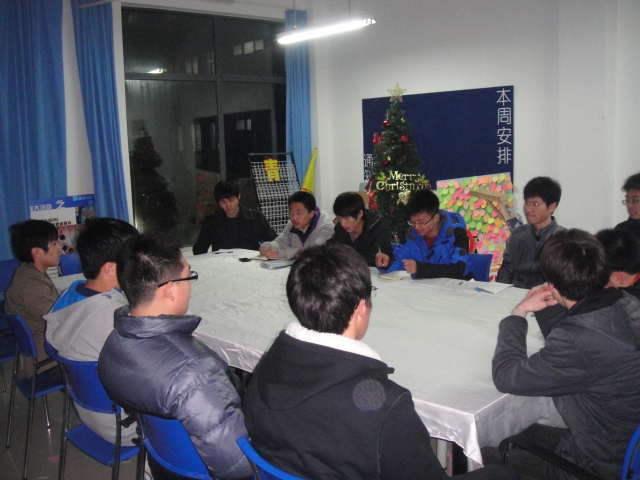 34-35号楼宇社区自主管理委员会全体成员于2013年3月5日晚8:45在社区内办公室召开了本学期第一次工作例会,就本学期将要开展的社区工作进行了讨论。社区辅导员郝海光老师参加并主持了这次会议。