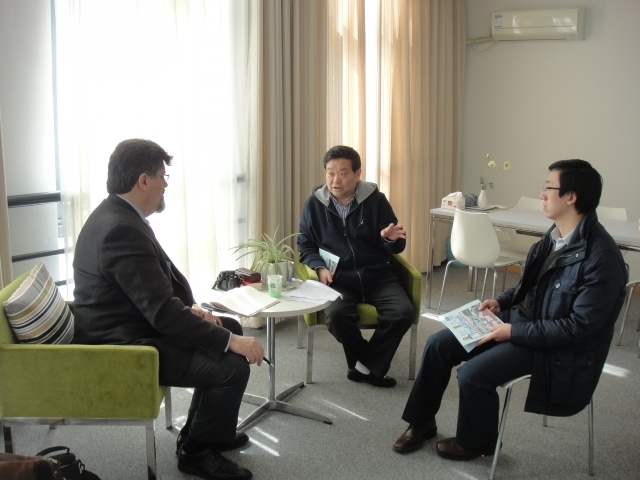 采访中,王学锋教授首先就目前世界航运业的形势谈了自己的看法,指出了各地区之间贸易的特殊性。他认为,即使在目前航运不太景气的情况下,航运企业如果能够改变经营策略,灵活应对航运危机,还是应该有信心、有能力渡过难关的。王学锋教授还特别向Bob Rust先生介绍了我校师资培养“三个资助计划”的情况,指出学校现在正努力加强对青年教师的培养,提高他们的科研、实践、外语水平,我院多名青年教师也得益于这“三大计划”的支持,深入港航企事业单位,去国内外知名高校深造,提高自身的教学和教研能力,适应学院国际化教育的需要。其间,他还向Bob Rust先生介绍了自己提出的“五步学习法”,即:Survey and understand、Appreciate and doubt、Pursue and connect the dots、Solve the problem by asking right questions、Look for opportunities and innovate。Bob Rust先生对此十分感兴趣,并对我校为师资培养做出的一系列尝试表示赞赏。