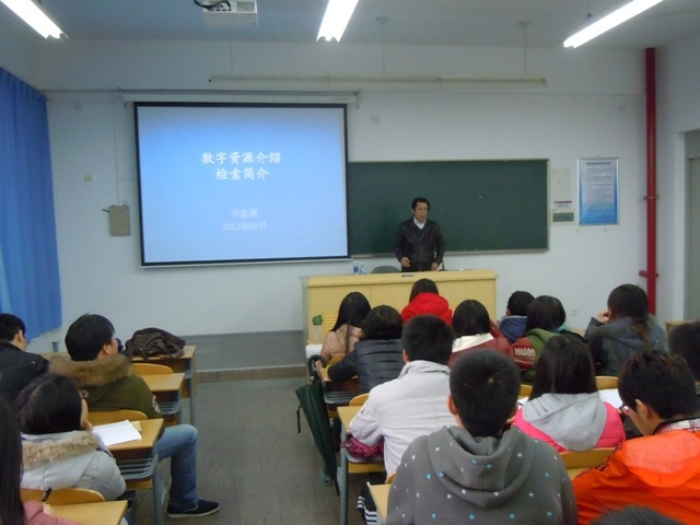 2013年3月13日下午1:30——3:30在教学区3A201,特邀我校图书馆文献检索教研室主任许忠锡老师主讲《情报利用与检索入门教育之数字资源介绍、检索简介》以填补专升本学生信息检索技能方面的空白,许老师针对专升本学生的情况,精心设计了讲座教案,深入浅出的介绍了我校图书馆的丰富电子资源;演示了中文资源与外文资源的检索与引用;教大家知名搜索引擎的高级检索技巧等,深受学生欢迎。本次讲座的成功举办标志着完善大学路——2012级交通运输专业专升本学生素质教育系列活动的正式启动。