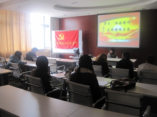 首先,支部党员葛丽娟同学向大家介绍了今年全国两会的背景和基本情况,并引出了“学习两会精神,认真贯彻落实”的话题。各位党员进行了积极热烈的讨论。同学们都从不同的角度谈了自己对两会精神的理解和认识。其次,葛丽娟同学也同大家阐述了自己的心得体会。最后,同学们就如何学习两会精神、作为大学生如何贯彻落实自己的想法展开了踊跃的讨论。