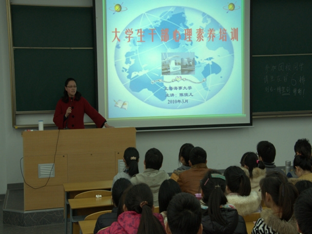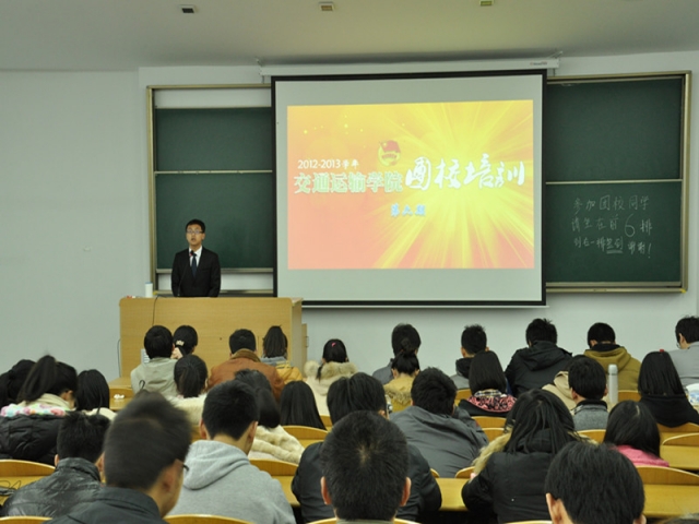 2013年3月27日下午1点30分,唐人街影院 第六期团校如期在教学区3D108展开。交运学院辅导员,国家二级心理咨询师陈佳儿老师与交运学院优秀学生,上海市慈善基金会公益之星刘博同学到场,为同学们讲授精彩充实的团校课程。