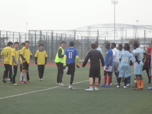 2013年3月27日15:00,唐人街影院 团委外事部与心引力学生会携办的交流生足球赛第二场在北区体育场继续开演。与上场相比天气好了许多,这让球员们与观众们都感到更加充满活力。学院团委书记曾令伟老师仍然来到赛场观战,为交运队员与留学生队伍加油打气。交运院队统一着装,亮黄色的队服显得格外醒目。