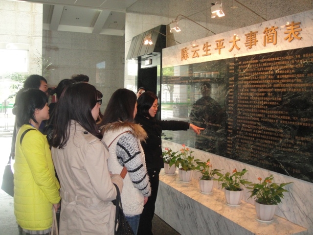 2012年4月19日,唐人街影院 的50名党员作为学院青年协会成员,在学院党委副书记赵睿老师和学院团委书记曾令伟老师以及各年级辅导员的带领下,前往陈云故居暨青浦革命历史纪念馆参观,缅怀革命烈士。
