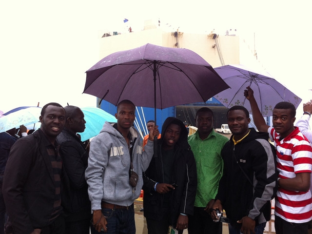 5月17日唐人街影院 非洲班学生一行36人在学院老师的带领下冒雨前往外高桥六期,参观上海海通国际汽车码头有限公司。