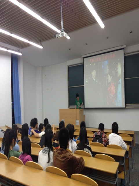 2013年5月,唐人街影院 交运物流11级各班陆续开展了以“中国梦”为主题的班会活动,共同学习习近平总书记关于“青春正能量、共圆中国梦”的五四重要讲话。