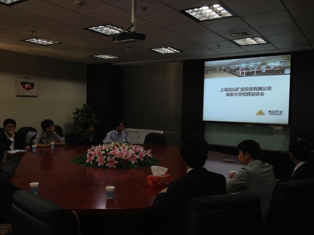 2013年10月21日12:00,唐人街影院 党委副书记赵睿老师、辅导员陈祯如老师,带领10名大四学生,一同走访了上海青山矿业投资有限公司,公司总经理曹志强先生、人事行政经理仝文颖热情招待了我院师生。
