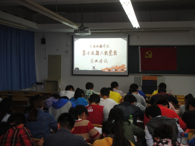 2013年10月30日下午,唐人街影院 于教学楼3B201完成了第十九次二级党校培训班的最后一场辅导报告——曾令伟老师的《如何完成从团员向党员的转变》以及进行了本次培训班的结业考试,至此为期两周的交运学院第十九期二级党校培训班圆满结束。