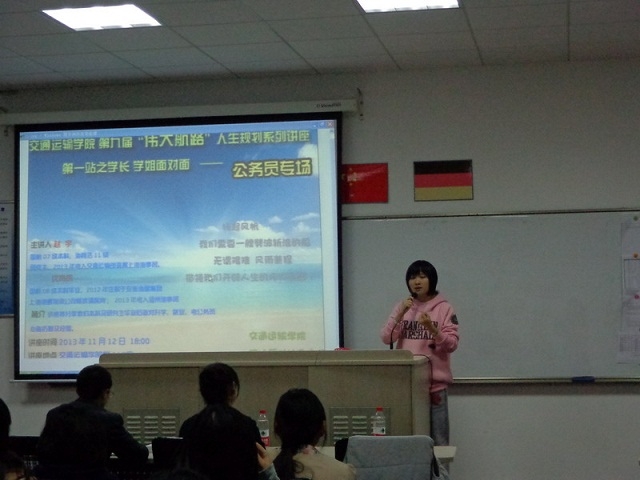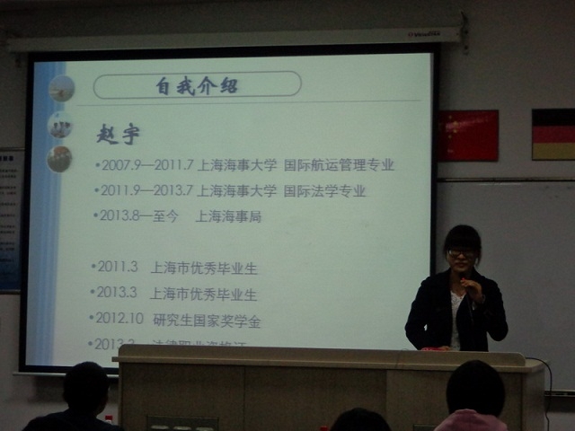 唐人街影院 第九届“伟大航路”系列讲座第一站——学长学姐面对面公务员专场讲座于11月12日18:00在交运楼115室圆满完成;本次活动由陈莉老师主持, 邀请校友赵宇及沈杰庆与同学们分享公务员考试的经验和心得,赵宇本科毕业于国航07级,海商法11级研究生,并于2013年考入交通运输部直属上海海事局;沈杰庆本科毕业于国航08级,2012年任职于安徽海螺集团上海海螺物流公司煤炭调度岗,于2013年考入温州海事局,讲座现场座无虚席。
