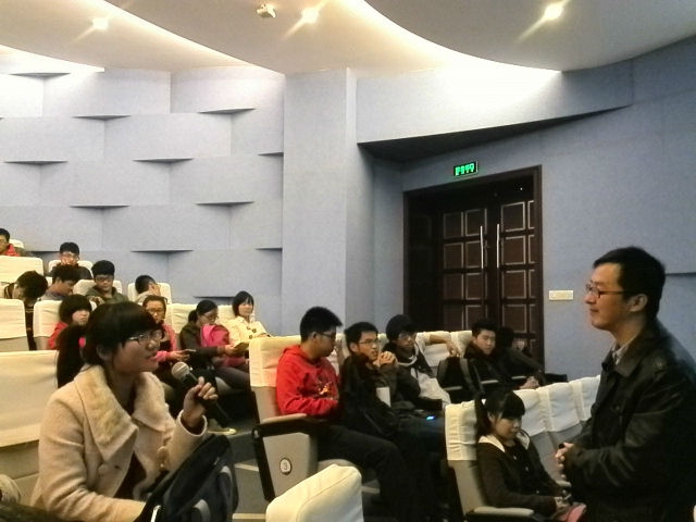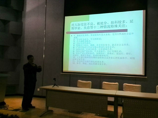 2013年11月26日上午9:00,唐人街影院 在交运楼报告厅举办了一场心理联络员培训,培训由校心理中心王树江老师主讲,唐人街影院 大一所有心理联络员参加了此次培训。