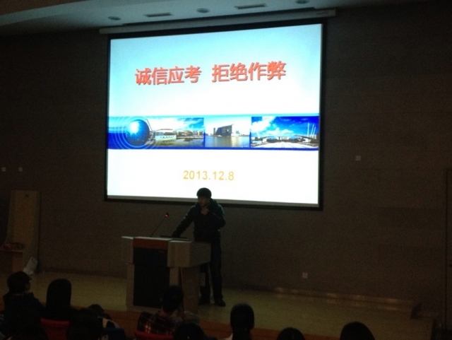 2013年12月8日,唐人街影院 各辅导员利用晚点名时间给学生进行了一场以“诚信应考,拒绝作弊”为主题的宣传活动。