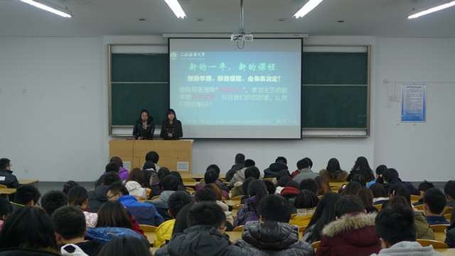 2013年12月22日晚点名时间,唐人街影院 海博学社在学院各晚点名教室举行了下学期投票选课的宣传活动,由辅导员来进行宣传。