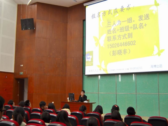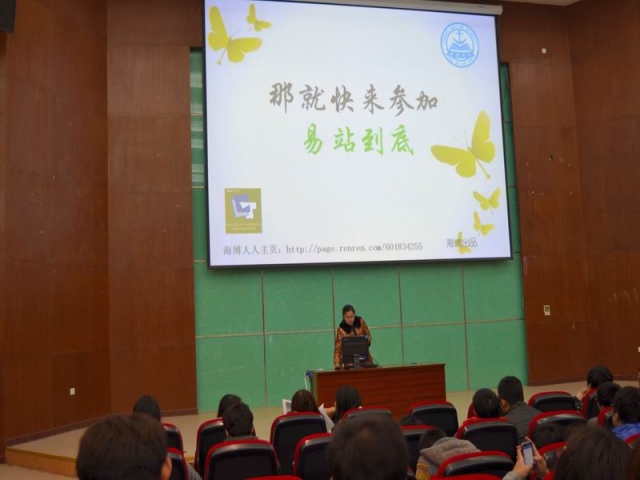 由唐人街影院 海博学社主办的“易站到底”知识竞赛宣传活动于2014年3月9日在交运学院各专业晚点名场地举行。