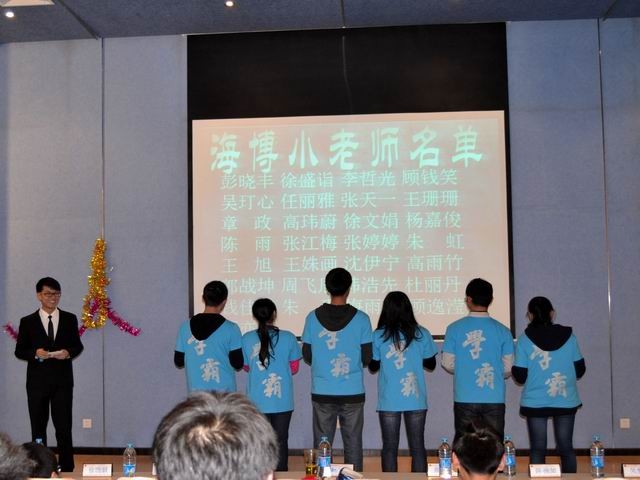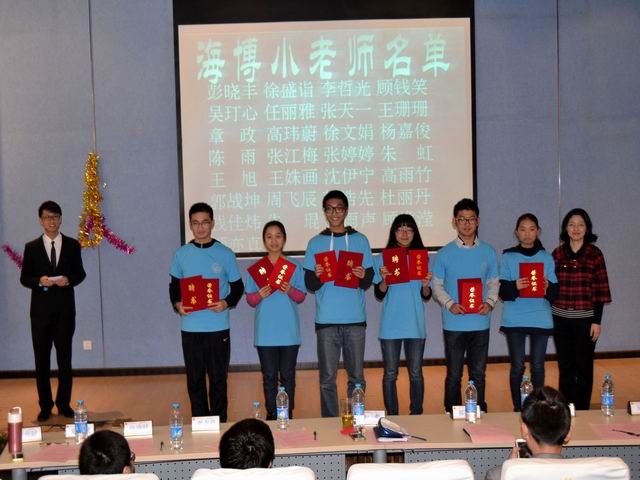 2014年3月26日下午,海博学社在唐人街影院 楼报告厅举行了一次对海博学社小老师的聘任和表彰活动。唐人街影院 党委副书记赵睿老师及各年级辅导员参加了此次活动。