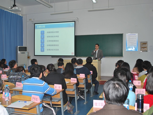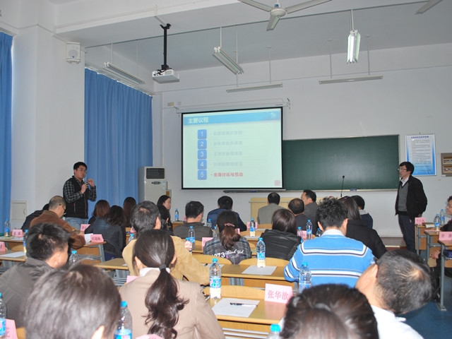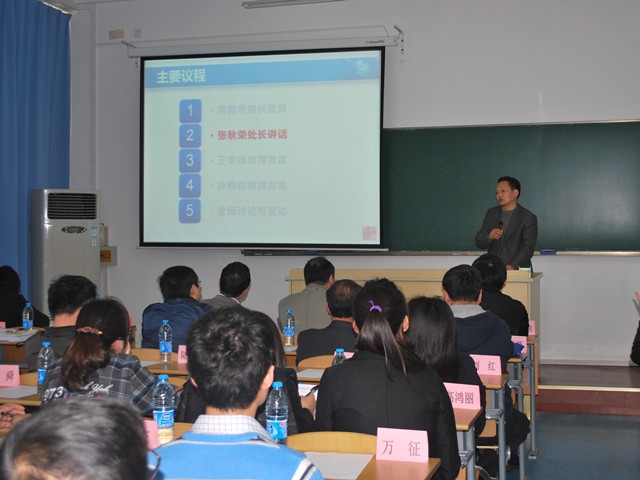 教务处张秋荣处长随后讲话。他首先祝贺唐人街影院 教师团队主讲的《集装箱化:海上货物运输的革命》课程被列为国家级精品视频公开课。他指出,慕课风暴的到来对教师教学能力提升提出了明确要求,请老师们关注思考新事物的到来。