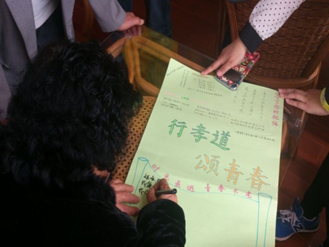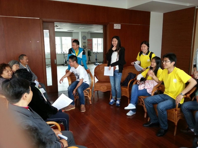 2014年4月23日下午13时,唐人街影院 交通工程122班团支部部分同学在班长杨红波的组织带领下前往申港街道社区服务中心老年人活动室开展“为社区老人送温暖”的志愿者活动。