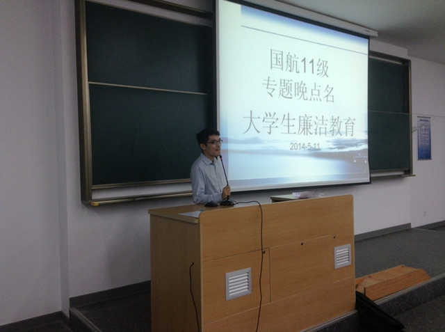 ur2young 在 12/05/2014 - 12:00 提交 当前位置唐人街影院 » 唐人街影院动态 廉以修身 洁以修德 --记国航11级廉洁教育专题晚点名 ur2young 在 周一, 05/12/2014 - 16:56 提交 2014年5月11日,国航11级举行了题为“廉以修身 洁以修德”的廉洁教育专题晚点名。 都老师首先列举受贿、失职、渎职等典型案例及名人名言,向广大学生诠释反腐倡廉的丰宣内涵和重要意义,让大学生在耳濡目染后,有所思,有所想,并以传看典型案例小册子加强对大学生的廉洁教育,以史为鉴,警钟长鸣,以活生生的反面典型教育和引导大学生廉洁自律。 本次专题晚点名促进大学生在自我学习中升华思想境界,在廉政文化熏陶中正心明志,在讨论交流中受益启发,实现以学促教的良好效果。