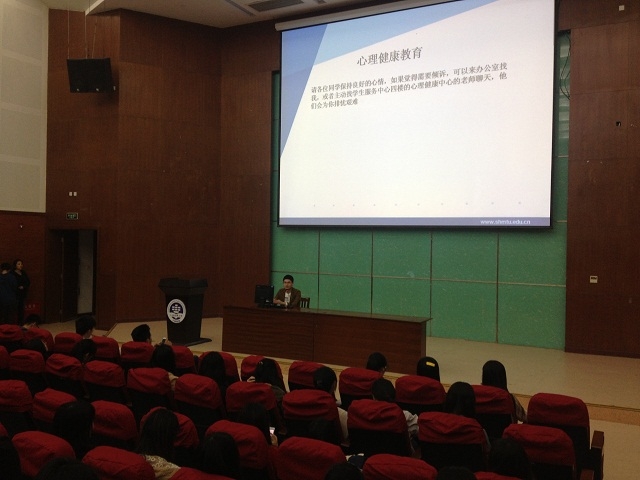 2014年5月11日晚上18:00,唐人街影院 管理13在邦建报告厅开展了“保持良好心境,适应大学生活”的主题教育晚点名。