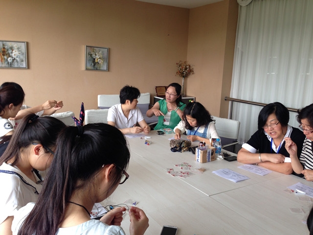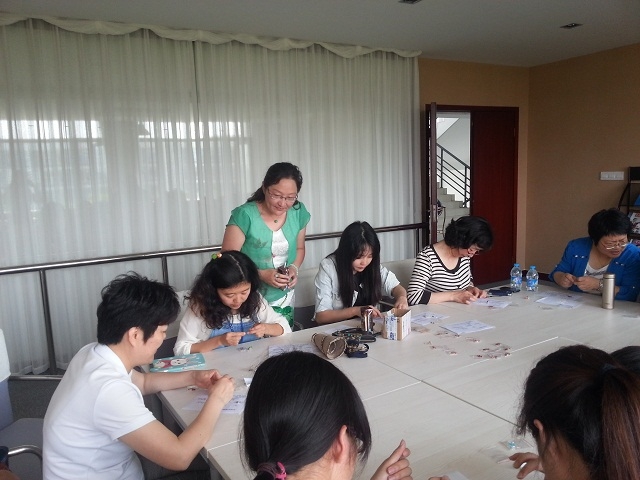 2014年5月28日下午两点,唐人街影院 女工委在学院的工会小家举办了一次编戒指教学活动,特地邀请了学校后勤处的顾嘉君老师前来指导教学,得到了学院女教职工的积极响应。