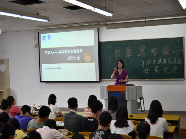 2014年6月18日下午15:40,洋泾街道志愿者服务队的动员大会在教学区3A204顺利举行。唐人街影院 党委副书记赵睿老师、指导辅导员朱红红老师、以及所有报名参加了本次志愿者服务队的同学参加了此次动员大会。