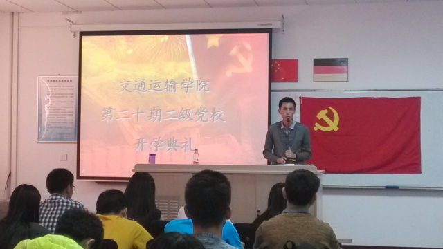 2014年10月15日下午13:20,唐人街影院 第二十期二级党校培训班在交运楼115室顺利举行。开班仪式由学院负责党建的辅导员郝海光主持,学院12、13级本科生入党积极分子参加了此次的开班仪式。
