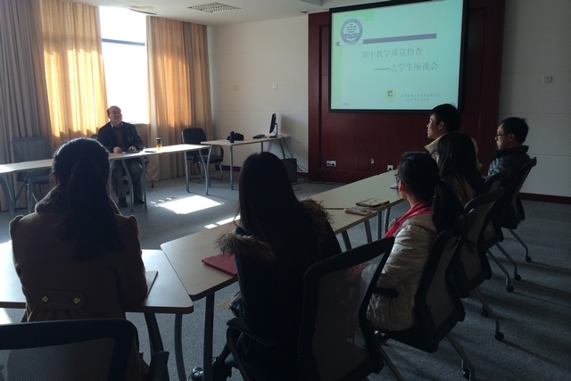 ur2young 在 18/12/2014 - 12:00 提交 当前位置唐人街影院 » 唐人街影院动态 唐人街影院 召开研究生期中质量检查之学生座谈会 ur2young 在 周四, 12/18/2014 - 16:20 提交 12月12日上午,唐人街影院 研究生期中质量检查之学生座谈会在交运楼209案例室举行,副院长韩皓教授主持。来自我院两个专业的10余名一年级研究生分别对各自专业的课程设置、教学效果以及入校以来在学习和生活中遇到的各种问题进行了反映,为学院今后研究生教育管理工作的开展提供了一些很有帮助的意见和建议。