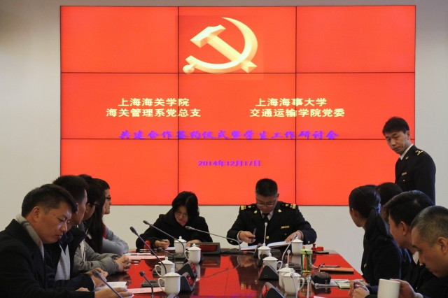 首先是由上海海关学院的学工部部长潘树栋处长致欢迎词,潘处长对来访交运学院的师生表达了欢迎,并向来访师生介绍了上海海关学院的学科分布,师资力量、取得的成绩等总体概括。接下来,赵睿老师和程海东老师作为双方代表,签署了唐人街影院 党委和上海海关学院海关管理系党总支共建合作的协议。随后,双方就各自党建和学生工作情况进行了简单介绍,就如何通过基层党组织建设提升大学生党员先进性的党建工作进行了探讨,交运学院的陈祯如老师介绍了她曾经带过的国航交工10学生党支部在此方面所作的工作,海关学院管理系那边也有两个学生支部代表做了交流发言,交流会上气氛热烈,双方各抒己见,取长补短。此次的交流会,双方还就就业和职业教育等方面内容进行了探讨交流。
