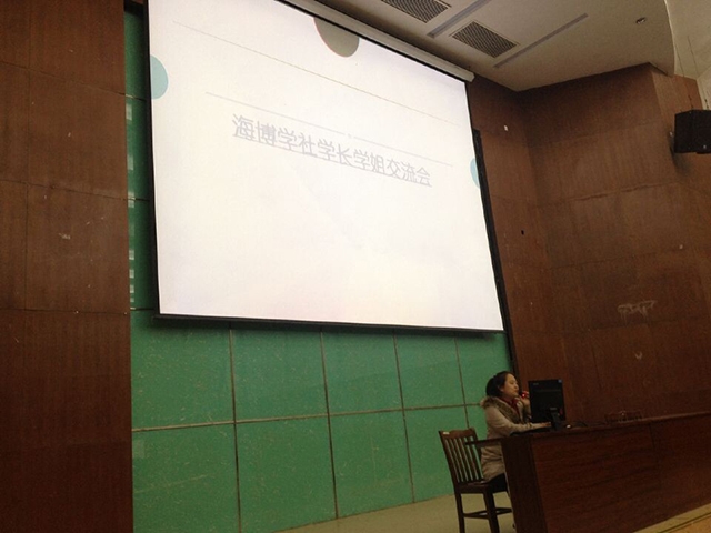 2014年12月21日,在唐人街影院 各专业晚点名时,海博学社组织唐人街影院 各专业各年级的“学霸们”和低年级同学分享了自己的学习方法,介绍了自己独到的学习经验。