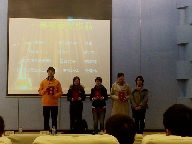 通过为期一个月的作品征集及评选过程,2014年12月10日,由唐人街影院 资助社团“同心互助社”承办的唐人街影院 第四届“自强•诚信•感恩”征文比赛暨第六届 “自强之星”颁奖仪式在唐人街影院 楼报告厅举行。 唐人街影院 党委副书记赵睿老师及学院部分辅导员老师参加了此次颁奖仪式。