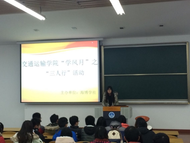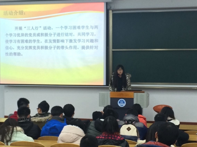 2014年12月28日,唐人街影院 海博学社在3D209举行了 “三人行”助学活动的介绍会,与学习困难学生结对的党员和入党积极分子均出席了本会。