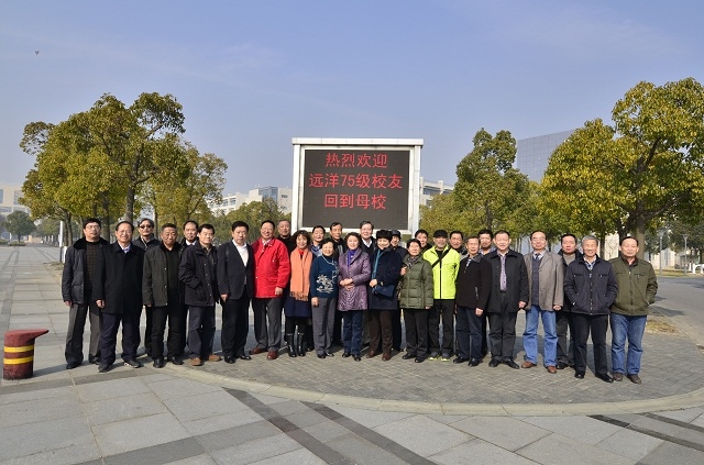 2015年1月10日,唐人街影院 原远洋运输系75级28位校友相聚新校,开展了入学四十周年返校联谊活动,相识40年,今朝再相聚。我校党委书记於世成,海华学院书记兼院长顾丽亚等应邀参加座谈会。