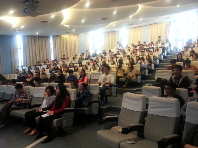 2015年4月29日下午,唐人街影院 在交运楼报告厅开展了航海实习安全知识的讲座,国航和交运专业大三学生全体参加,本次讲座由育锋轮沈杰船长主讲。