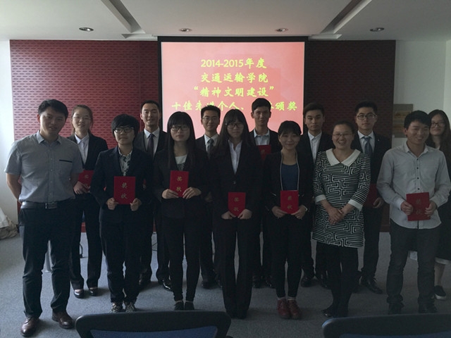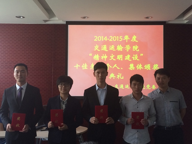 2015年5月20日下午13:30分,唐人街影院 在交运楼217举办“2014-2015学年唐人街影院 精神文明建设先进个人和集体”颁奖典礼。辅导员刘建、范晓云应邀出席了此次活动。