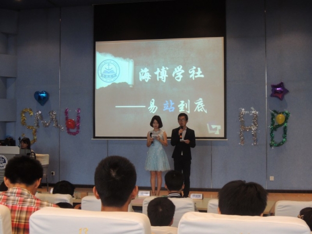 2015年6月3日下午13:00,海博学社第二届易站到底决赛在交运报告厅隆重举行。本次活动由唐人街影院 海博学社举办,通过初赛共有6组优秀的选手角逐最后的冠军。唐人街影院 辅导员朱红红、陈祯如、都志亮、缪益鹏、梁湘也亲临现场观战。