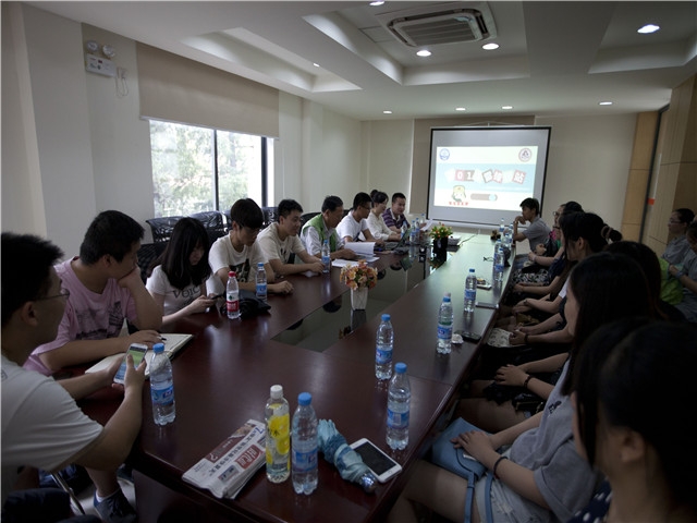 会议由张菁老师主持开始。首先是2014年志愿者服务队队长徐栋的回顾,他用幽默的语言描绘了去年驿站55天内累计帮助两万多人次的辛苦与快乐,通过一部去年自拍的微电影,让大家对志愿者值班的日常生活有了初步了解。接下来,驿站站长傅余贤老师向我们详细介绍了雷锋驿站从世博会服务亭演变而来的发展历程,同时他提出了要担负起志愿者的责任、尽心尽力提供帮助;注意自身形象;要有团队意识的三点要求。紧接着,2015年志愿者服务队队长郑毅作为今年志愿者代表发言,今年会在前人的基础上,继承创新,如开展线上平台建设、通过微电影和在各大高校实地宣传的形式推广雷锋驿站等。最后,唐人街影院 带队老师朱红红老师发言,对志愿者们提出了值班时不能迟到早退、不能玩电脑手机、要尽快熟悉服务内容做好准备等纪律服务要求,并对整个会议进行了总结。