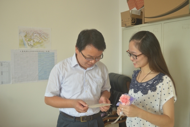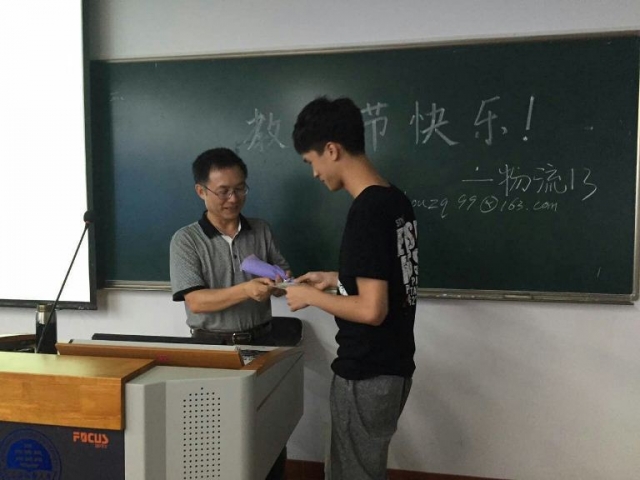 教学区的各个教室传来同学们整齐的声音:祝老师教师节快乐。学生代表向老师献上花朵和贺卡,同学们起立向老师送去节日的问候。收到礼物的老师非常的感动,表示收到同学们的礼物和祝福,让身为一名教师的自己感到很满足。同时,在交运学院楼里,交运的同学们还向没有教学任务的老师送上了小礼物及节日祝福。