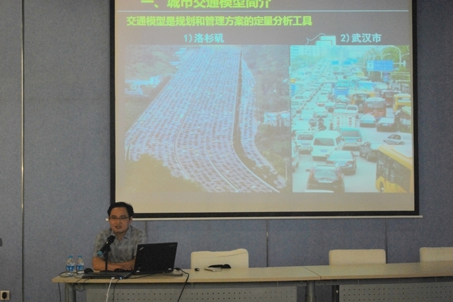 首先,张博士对交通规划建模中宏观、中观以及微观三个不同角度的建模方法和应用进行了简述;接着以宏观建模为主,对建模的流程和步骤进行了重点讲解。期间,结合上海市第四次、第五次交通大调查的实际编制情况,对模型结构设计、交通调查方案以及后期的模型校核等步骤进行了讲解。为我院师生深入了解交通规划建模领域的知识起到了重要的作用。