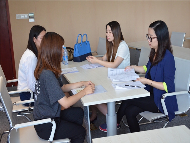 在此之前,同学们就已经有众多同学向该公司投递了简历。公司经过筛选,10余位面试者脱颖而出,来到现场参加了面试。首先,唐女士与面试同学们简单地聊了聊对于职业发展的理解。随后,唐女士一行人向同学们展示了公司的主营业务以及发展前景等相关信息,同时对员工工作环境、薪酬及福利待遇进行了简单的介绍。介绍之后,面试依次有序进行。毕业生们积极参加,反响良好。